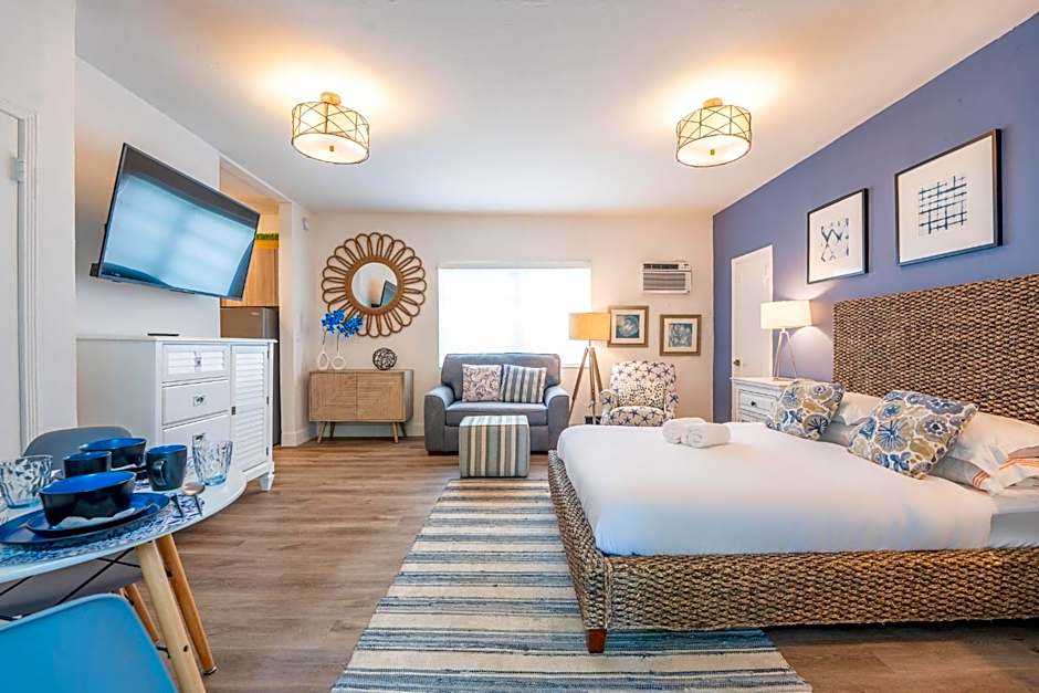 From compact studios to spacious two-bedroom apartments, the Miami Beach base offers flexible living for solo travelers, couples, and groups. Studio spaces run about 452 square feet and sleep up to 3 guests, while 603-square-foot 1-bedroom and 753-square-foot 2-bedroom layouts provide room to roam. Kitchens with kitchenware and private entrances keep things convenient, making it easy to whip up a meal or unwind after a sun-soaked day by the shore.